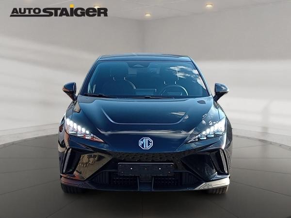 Der MG4 verfügt über ein modernes und sportliches Design, das sich durch klare Linien und eine dynamische Frontpartie auszeichnet. Die Frontscheinwerfer sind in einer markanten Form gestaltet und verleihen dem Fahrzeug eine charakteristische Optik. Der Innenraum des MG4 bietet Platz für bis zu fünf Passagiere und verfügt über eine moderne Ausstattung mit zahlreichen Komfort- und Sicherheitsmerkmalen.